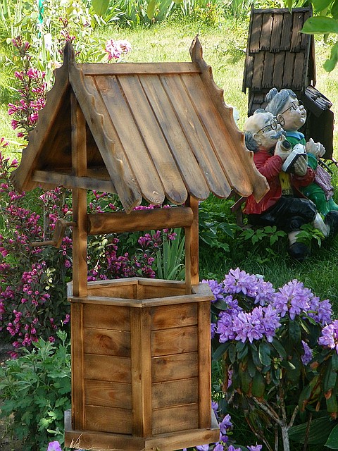 Колодец декоративный. Декоративные деревянные колодцы могут выступать как самостоятельным элементом, так и входить в стилевую композицию .